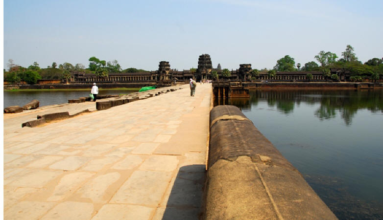 | Causeway over baray, Angkor Wat, Cambodia. Photograph by Brian W. Coad. |