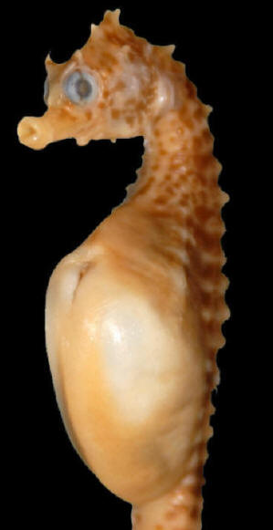 | Hippocampus abdominalis, New Zealand, Porto Bello, Otago Peninsula, South Island, CMNFI 2000-0047, 87 mm from top of head to tail curl. Photograph by Brian W. Coad. | |
