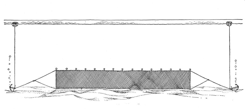 set gillnet = a gill net fixed to the bottom or a distance above it by anchors or ballast. Also called anchor net, straight net or sunk gillnet. |