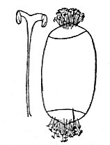| Bdellostoma (= Eptatretus), egg with anchoring hooks, one hook enlarged, from Kingsley's "Text Book of Vertebrate Zoology", 1906. Photograph by Brian W. Coad.....more |