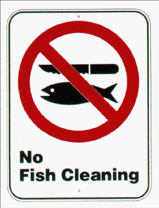 no fish cleaning = prohibition of the act of cleaning a fish for food.