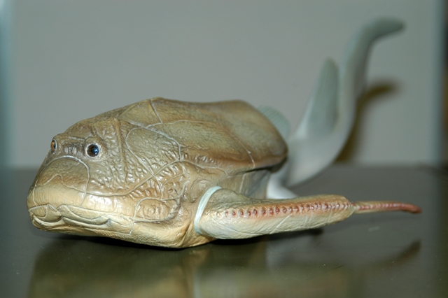 | Model of a placoderm, Bothriolepis, Canadian Museum of Nature. Photograph by Brian W. Coad. |