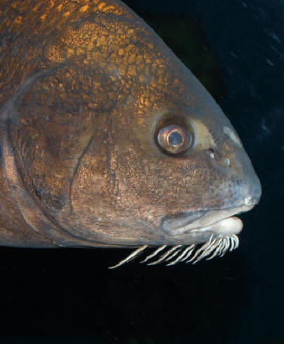 | Pogonias cromis, black drum (Sciaenidae), aquarium specimen. Photograph by Brian W. Coad. |