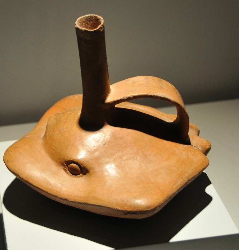 | Ceramic vase in form of a skate, Mochica culture, Peru, 100 B.C.-700 A.D., Museo de América, Madrid. Photograph by Brian W. Coad. |