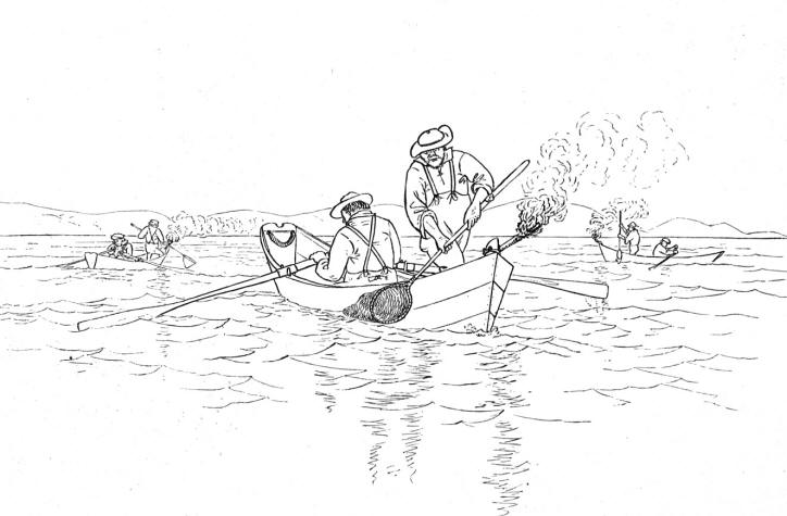 torching = attracting fish at night by means of a light so they may be easily netted or speared. |