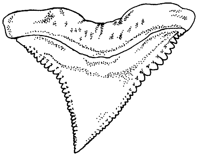 Composite drawing, Carcharhinus leucas, upper jaw tooth