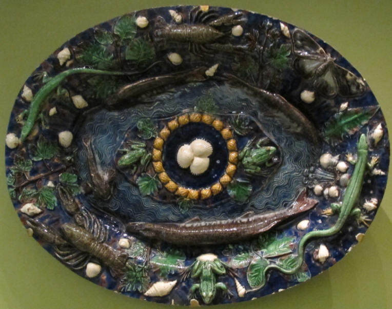 Palissy ware = dishes covered with coloured models from nature, such as fish, in high relief. After Bernard Palissy (1510–1590). |