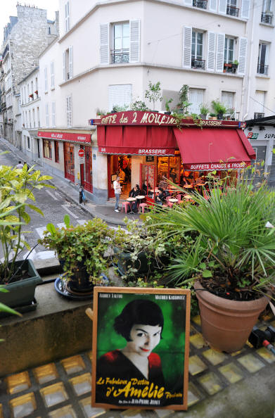 | Cafe and poster from the movie Amélie, rue Lepic, Paris, September 2011. Photograph by Brian W. Coad. | |