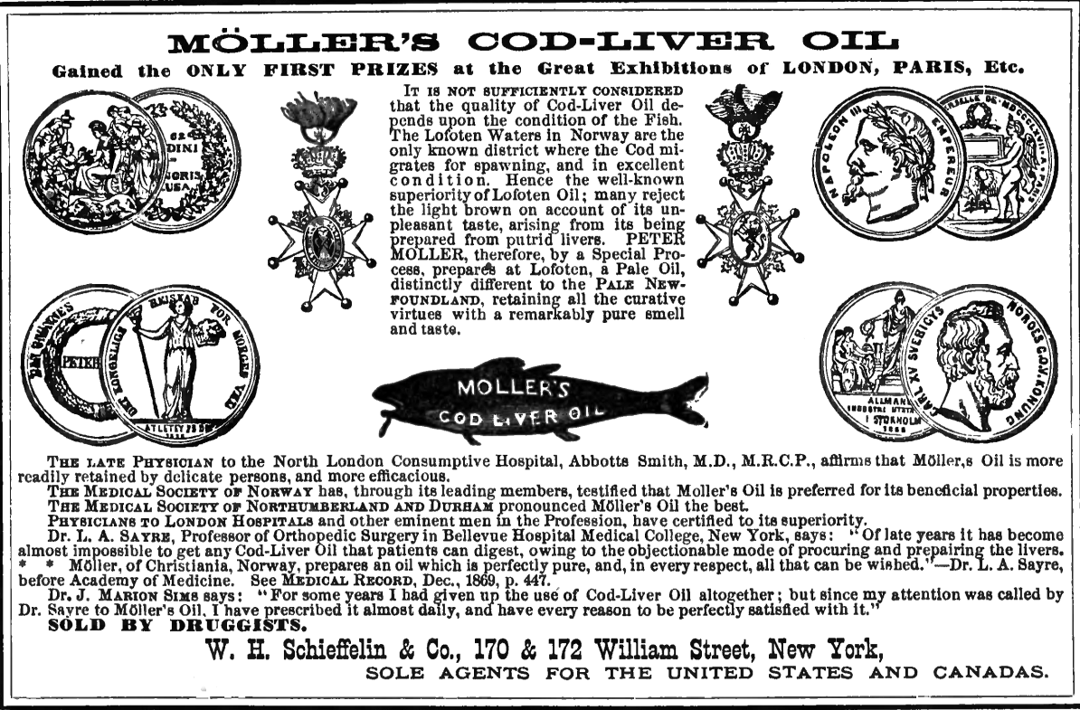 | Advertisement for cod liver oil from Wikimedia Commons: http://commons.wikimedia.org/wiki/File:Dame_Europa_Cod_Liver_Oil_Advert.png |