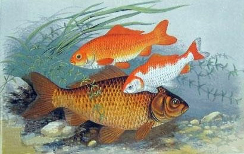 | Carassius auratus from British Fresh-Water Fishes by Rev. William Houghton (1879). Photograph by Brian W. Coad. |