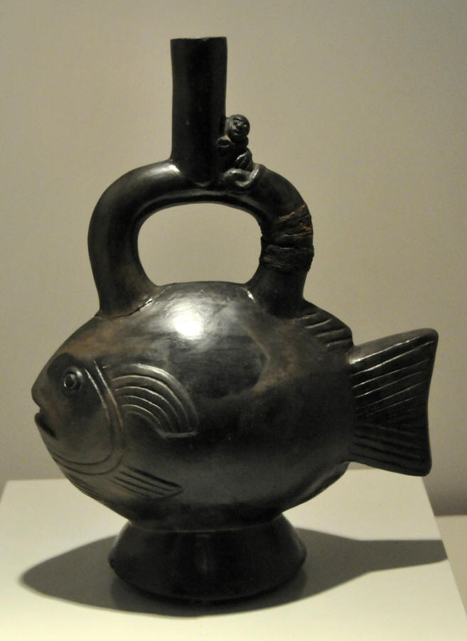 | Ceramic vase, Chimu culture, Peru, 1100-1400 A.D., Museo de América, Madrid. Photograph by Brian W. Coad. |