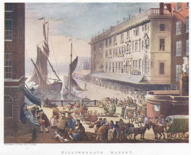 | Billingsgate Fish Market from Rudolf Ackerman's Microcosm of London (1808-11). |