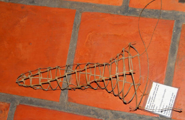 funnel trap = any fish trap where the narrowing shape entraps the fish.