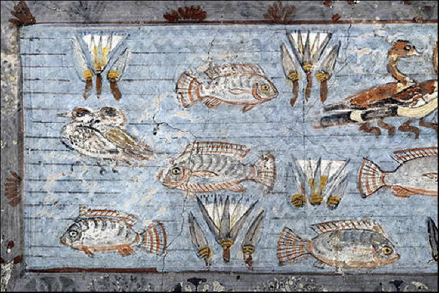 | Tilapia in central garden pool in Nebamun’s Tomb Painting, Thebes, late 18th Dynasty, ca. 1350 BCE, British Museum. |