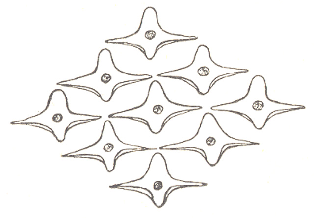 | View from below of scales of Scyllium (= Scyliorhinus) canicula from Lydekker et al. "Reptiles, Amphibia, Fishes and Lower Chordata", 1912. Photograph by Brian W. Coad.....more |