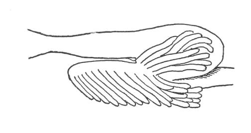 | Pyloric caeca in Salmo; stomach at upper right, intestine at lower left, from Kingsley's "Textbook of Vertebrate Zoology, 1906. Photograph by Brian W. Coad. |