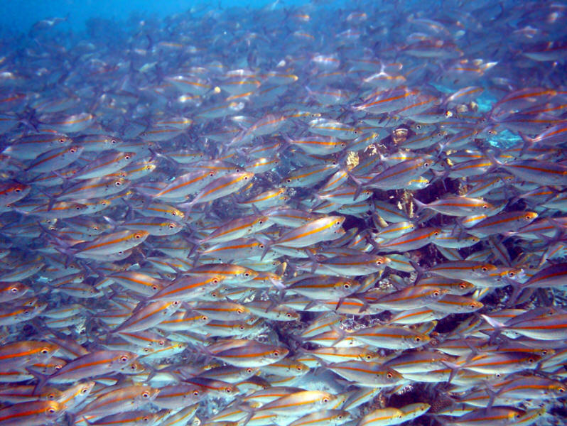 | Wikimedia Commons: http://en.wikipedia.org/wiki/File:School_of_Pterocaesio_chrysozona_in_Papua_New_Guinea_1.jpg |