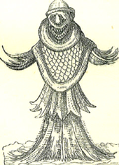sea monk = an organism referred to in Conrad Gesner's Historiae animalium based on a specimen found off the eastern coast of Zealand about 1546. Superficially it resembled a monk, hence the name, and has variously been identified as a giant squid, a walrus, a seal, or a monkfish (Squatina squatina). It could be a relative of the Jenny Haniver, q.v. |