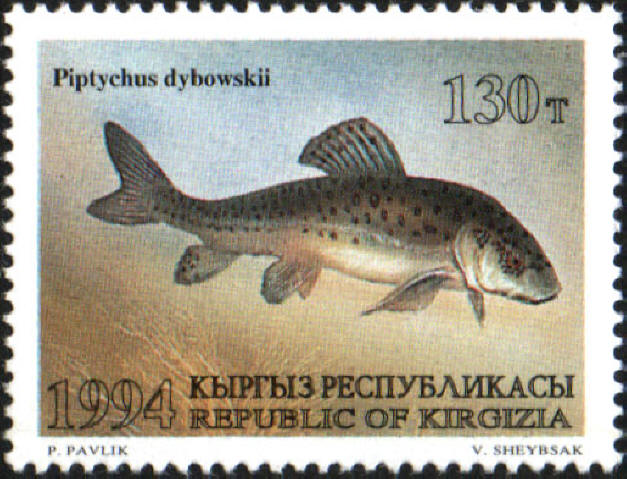 | Diptychus dybowskii wrongly spelled on a stamp, from Wikimedia Commons: http://commons.wikimedia.org/wiki/File:Stamp_of_Kyrgyzstan_046.jpg |