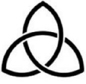 triquetra = three fish or fish outlines interlinked. A symbol of the Holy Trinity (Father, Son, Holy Ghost) used by the Celtic Christian Church but dating before Christianity.